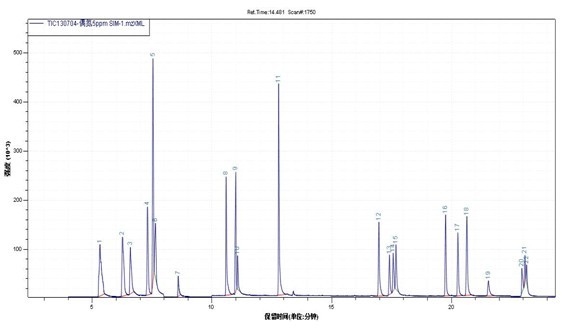 16种PAHs规范起来品SIM扫视阴阳离子流色谱图