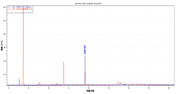试品TIC图(粉色)与邻苯混标TIC图(洁白)