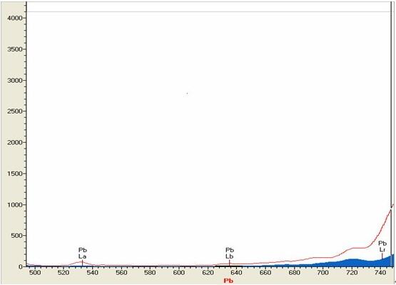 如图所示实谱表現纯铜rc101(Pb,0ppm)即本底、乳白色虚谱为 镍白铜313(Pb:60ppm)