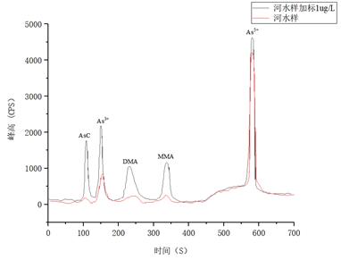 江水供试品及加标1µg/L的公测工作成效详情表4,供试品及加标后砷样式形态累积谱图图甲5如图是。