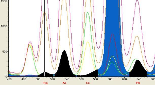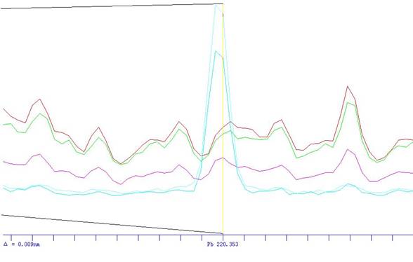 Pb的图谱(虚谱展现不同的含量的谱峰)