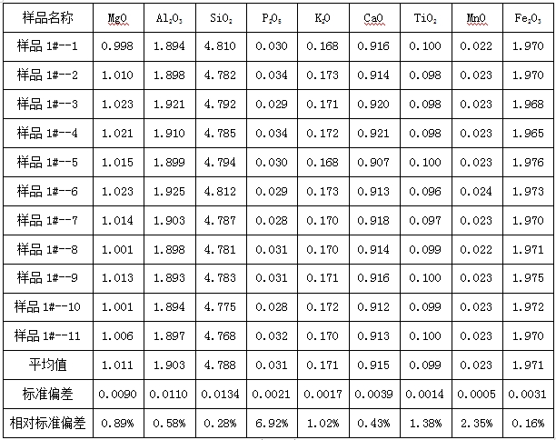 图3为石墨1#样品的X射线荧光谱图,从谱图可知,样品的含有少许Mg、Al、Si、P、K、Ca、Ti、Mn、Fe等元素。利用该样品停止反复性测试以后,检测成果入彀算了对应元素的氧化物含量,测试成果中显现出较好的反复性。