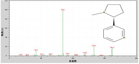 尼古丁(Nicotine),俗名烟碱,是一种存在于茄科动物(茄属)中的生物碱,也是烟草的首要成份之一。尼古丁会令人上瘾或发生依靠性,反复利用可致使心脏速率增添、血压下降和食欲下降,摄取大剂量尼古丁会引发恶心乃至吐逆,严峻祸及灭亡。气相色谱质谱联用仪(GCMS),接纳气相色谱分手和电子轰击电离源(EI)共同全扫描形式完成定性阐发,GCMS-SIM形式完成定量阐发,可利用于烟草中尼古丁的检测。