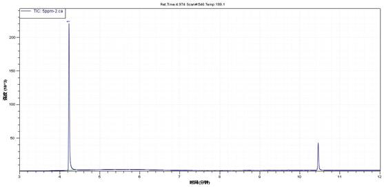 方针物在5ppm-100ppm线性杰出。取低含量尼古丁加标,样品颠末乙酸乙酯超声萃取。50ppm加标程度下谱图以下,获得了比拟对劲的结果。