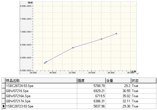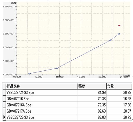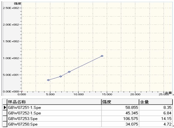 ② . 萤石(shi)国标样Si的(de)任务曲线与相干数据(ju)